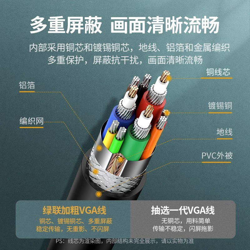 绿联vga线台式 电脑显示器屏与主机连接线高清延长数据传输转视频