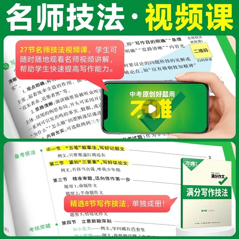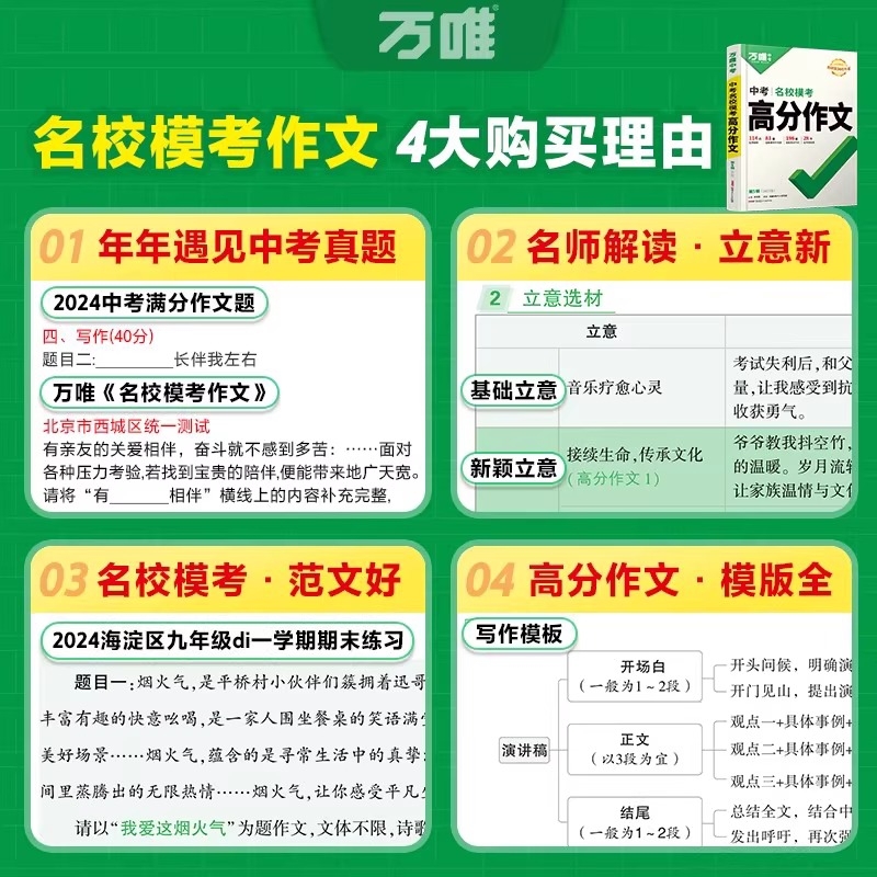 2026新版 2025初一初二初三优秀作文素材模板七八九年级名校优秀高分范文作文书万维教育 万唯初中生满分作文中考满分作文人教版