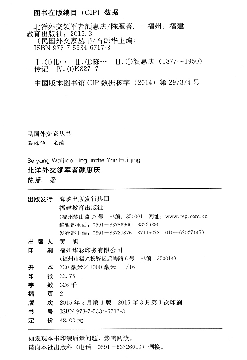 社科 社 民国外交家丛书 福建教育出版 闽教出版 历史书 著 陈雁 北洋外交领军者颜惠庆 现货 正版