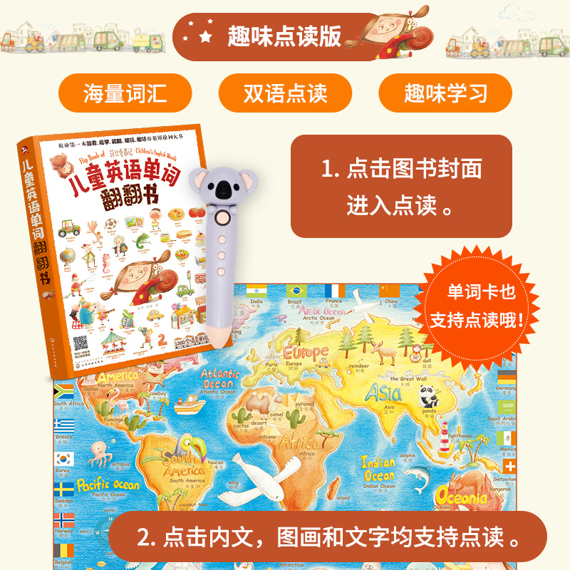 英文点读笔16G 入门单词书 点读版 点读发声书儿童英语 儿童英语单词卡片幼儿英语启蒙单词书 儿童英语单词翻翻书 小考拉点读笔