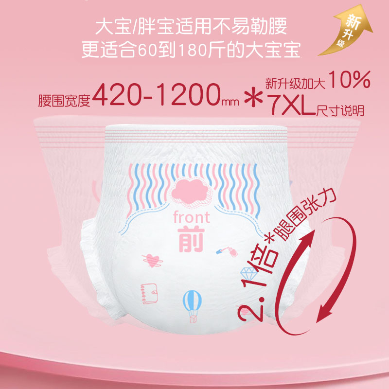 婴贝萌拉拉裤 XL婴儿超薄透气XXXXL男女LXXXL大童尿不湿XXL纸尿裤