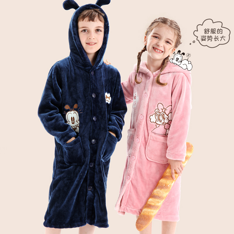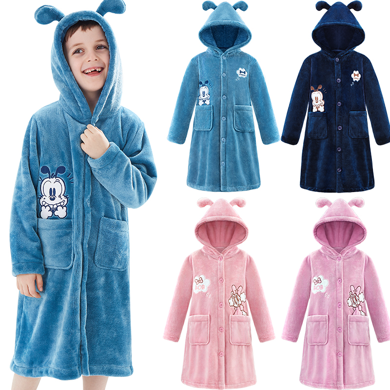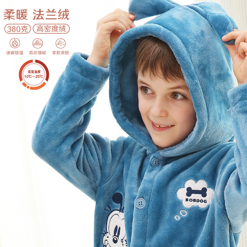 清仓巴布豆儿童睡袍法兰绒男童浴袍宝宝秋冬睡衣男孩珊瑚绒中大童