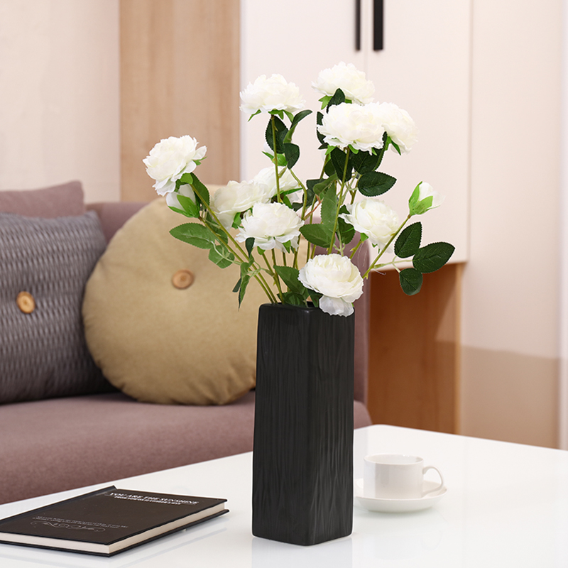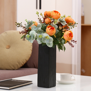 欧式 饰摆件 玫瑰插花花瓶白色简约陶瓷花器客厅餐桌干花鲜花水培装