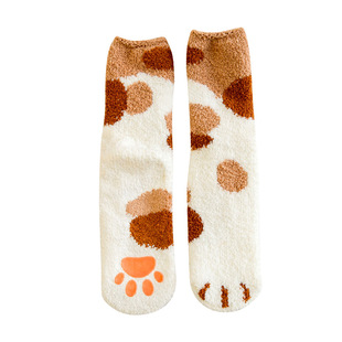 地板袜女珊瑚绒袜子女冬季 加厚可爱猫爪家居毛绒睡觉袜子女睡眠袜
