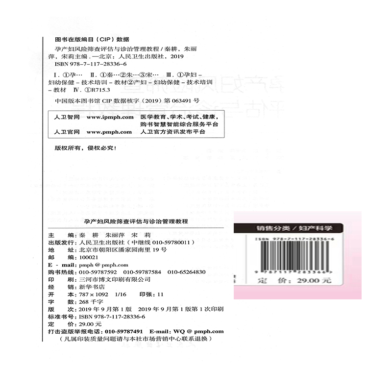 秦耕 朱丽萍 人民卫生出版 现货 社 2019年9月培训教材 孕产妇风险筛查评估与诊治管理教程 主编 正版 宋莉