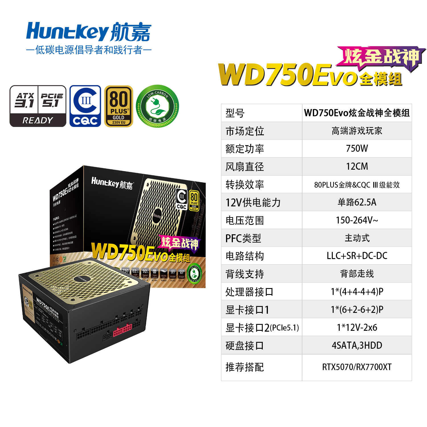 航嘉WD750电脑电源750W全模组台式 额定850W金牌游戏电竞主机1000W