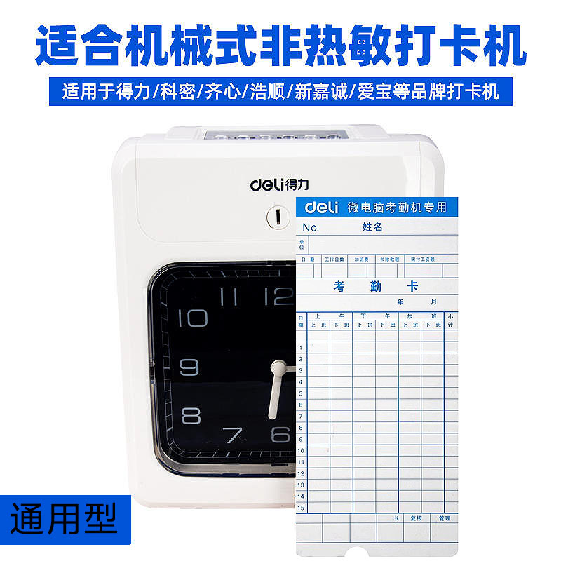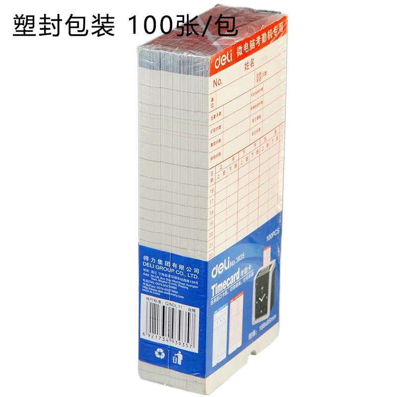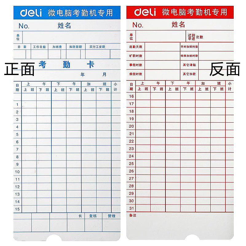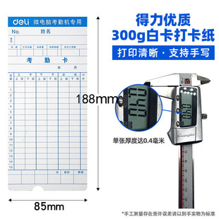 100张 得力考勤卡卡纸上班打卡机打卡纸卡加厚白通用微电脑钟卡片科密齐心手写考勤机用非热敏出勤卡31天
