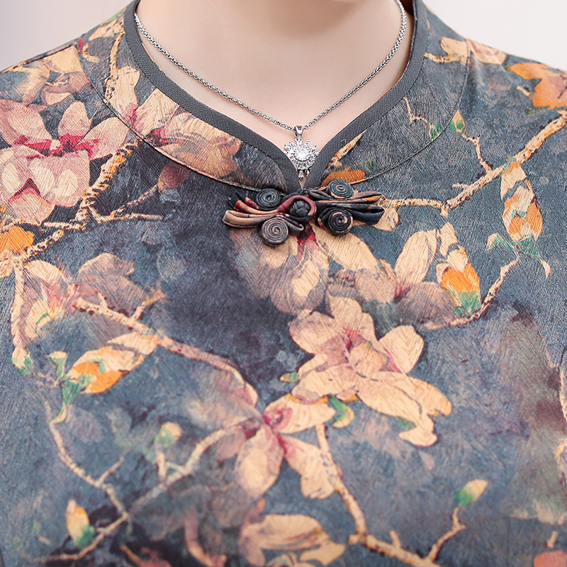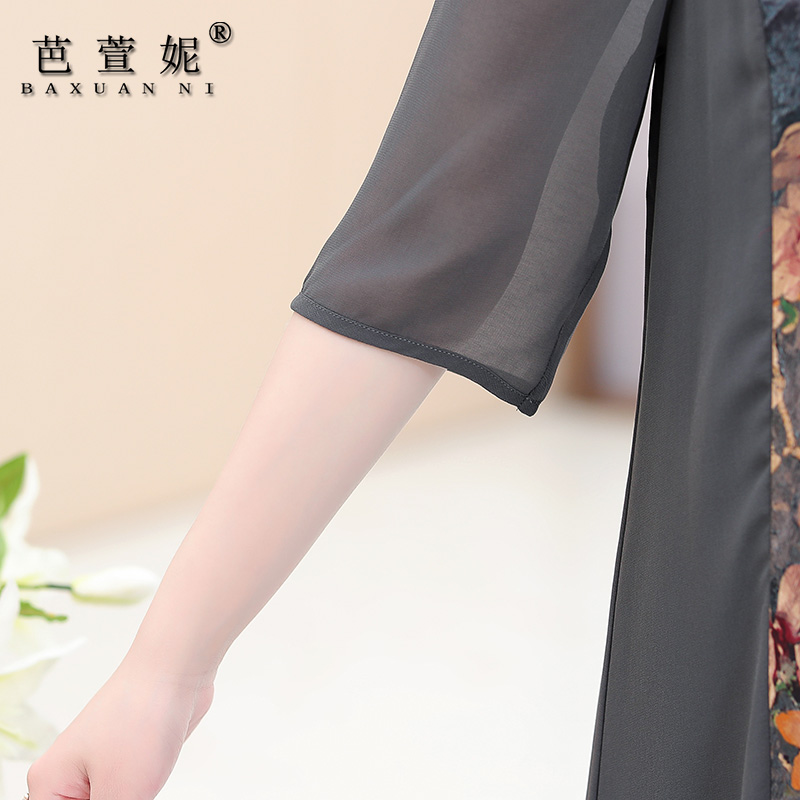旗袍领宽松雪纺连衣裙 40岁50中老年女装 中年胖妈妈夏装 加肥加大码