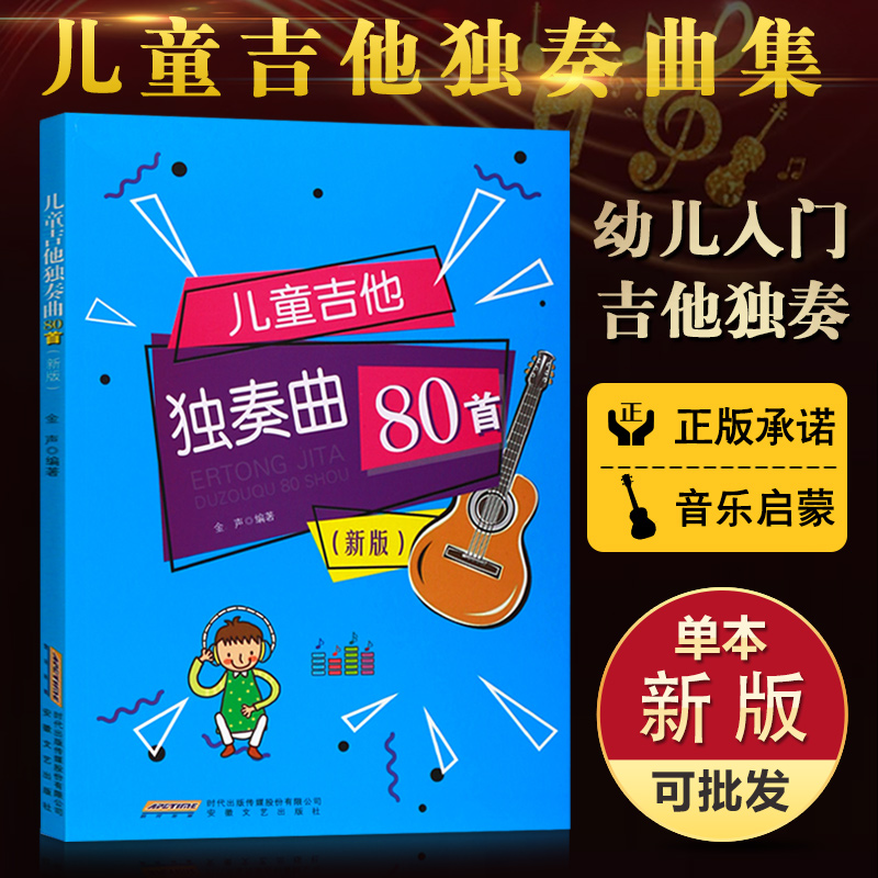 儿童吉他独奏曲80首新版 幼少儿儿童吉他入门曲谱书籍教程教材 扫码 儿童吉他流行歌曲谱大全 儿童吉他教学教材 听音频 儿童吉他教程