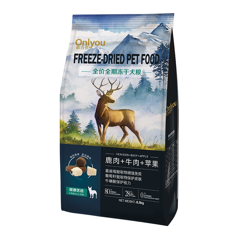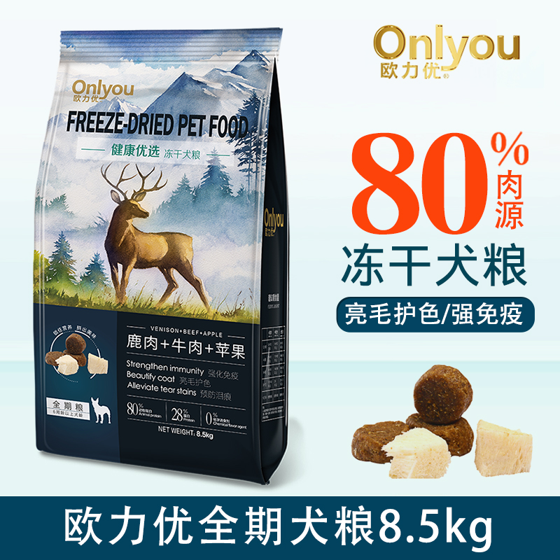 欧力优冻干鹿肉牛肉狗粮宠物金毛泰迪犬通用全犬粮成犬狗粮8.5kg