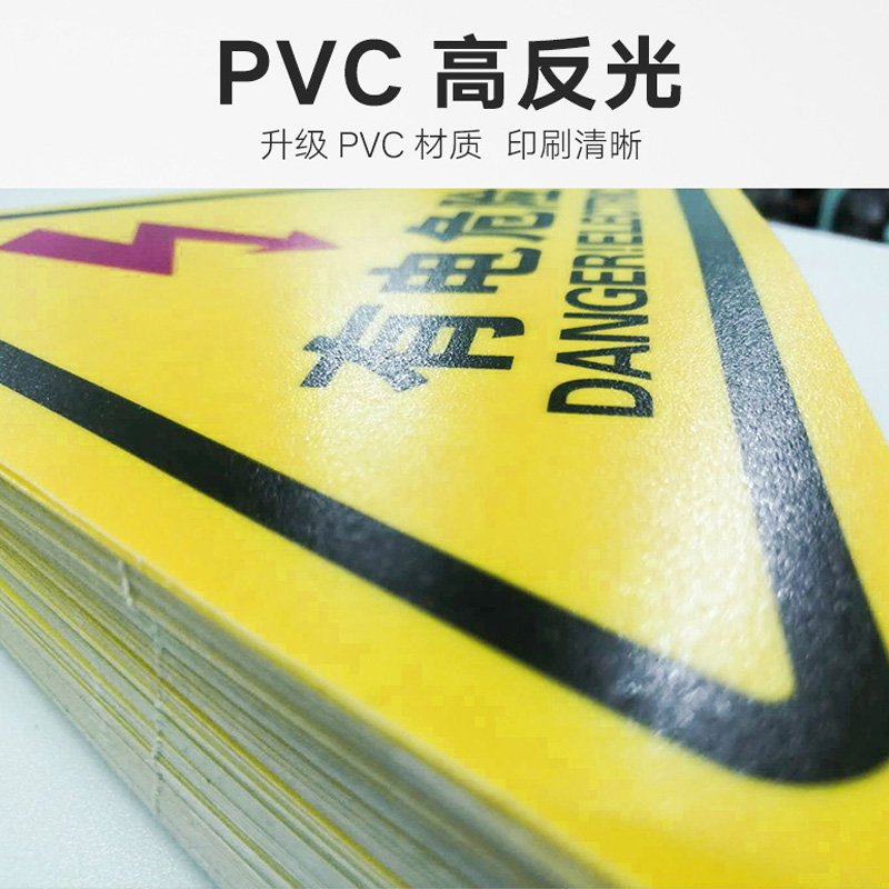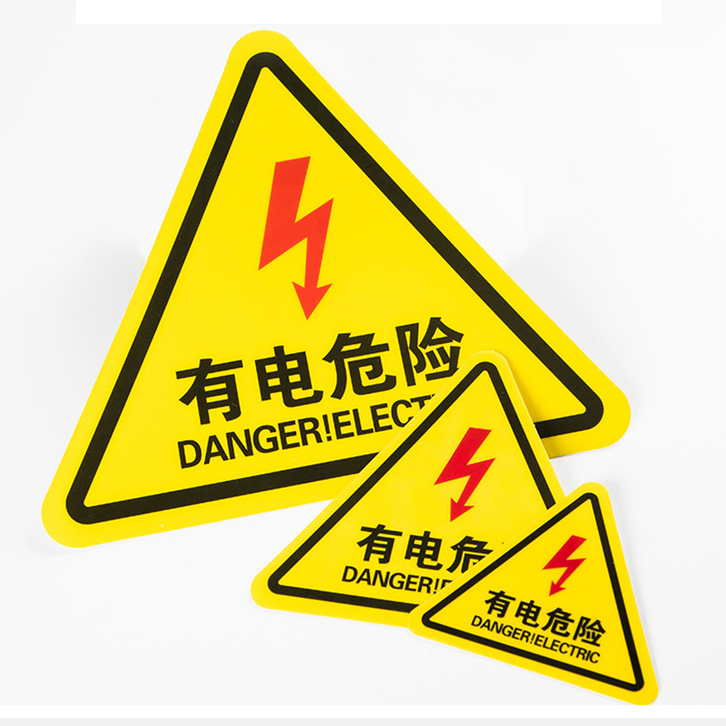 有电危险警示贴当心触电夹手小心机械伤人注意安全高温烫手警告标志三角形高压电闪电标示贴纸电力提示标识牌