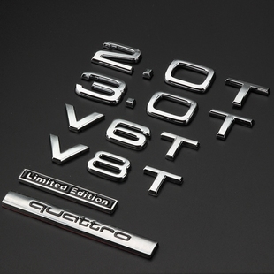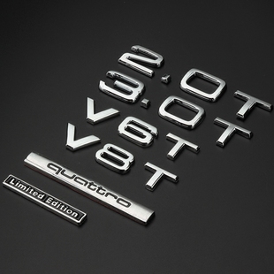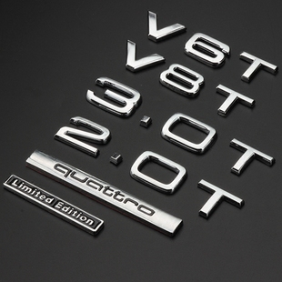 奥迪车标A4A6Q3Q5Q7A8L四驱WV6TV8T车贴后尾标字标W12侧标车身贴
