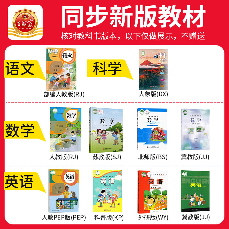 科学课堂练习册提优拔高助学手册 大象版 2025上册五年级王朝霞创维新课堂同步优化训练小学部编人教版 语文数学思维训练英语北师版