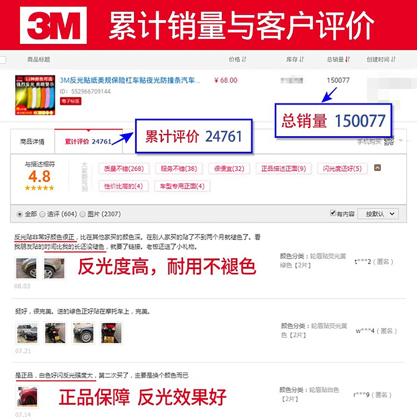 3M反光贴纸美规保险杠车贴夜光防撞条汽车身划痕遮挡轮眉装 饰贴