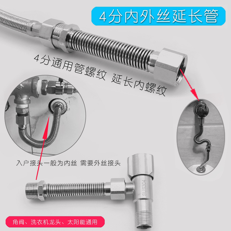 4分延长管内外丝波纹管水龙头加长水管软管不锈钢马桶防爆热水器