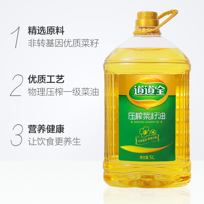 烹饪食用油 非转基因物理压榨家用桶装 道道全5L压榨菜籽油 2瓶