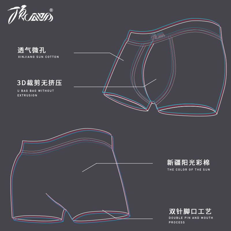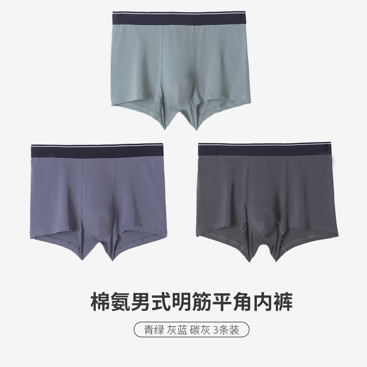 平角裤 顶瓜瓜男士 印花青年商务休闲棉质U凸男式 棉中腰3条装 棉 内裤