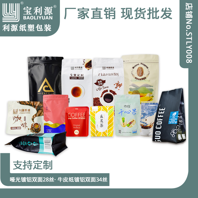 宝利源黑色风琴咖啡豆包装 袋单向气阀咖啡袋食品级铝箔加厚茶叶袋