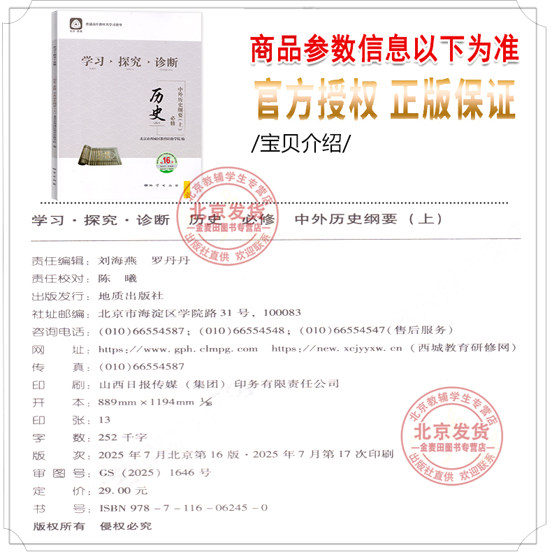 高一历史学探诊 学探诊第16版 北京市西城区教育研修学院编 北京西城 2025秋学习探究诊断 全新正版 高中历史必修中外历史纲要上册