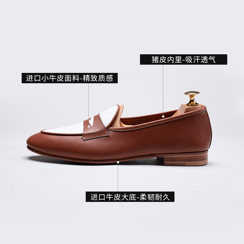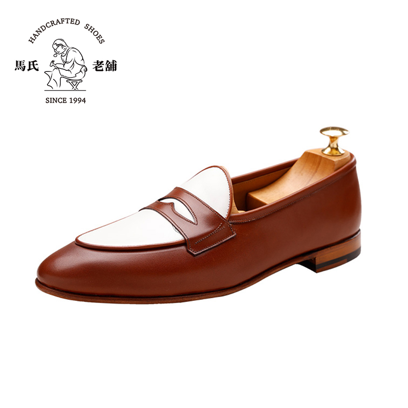 马氏老铺女士乐福鞋 日常休闲拼色浅口小牛皮套脚情侣鞋