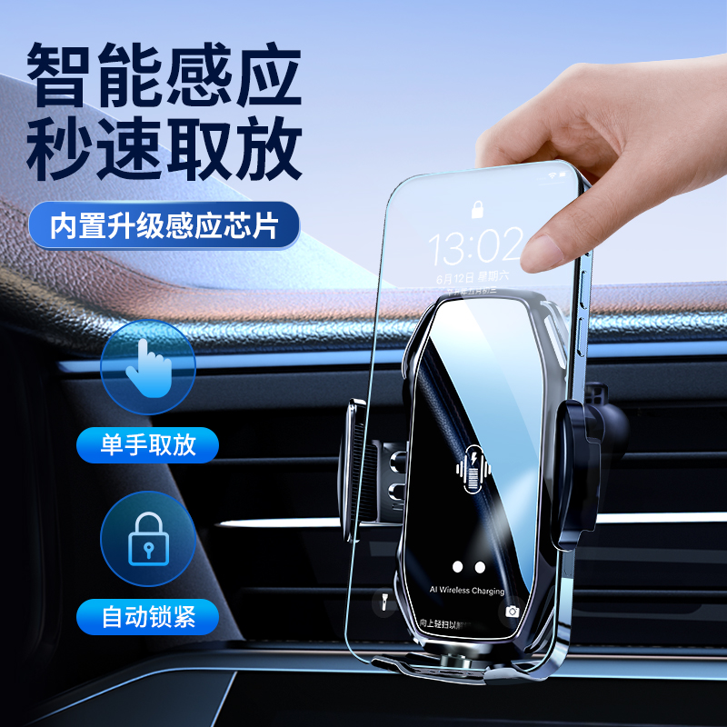 车载无线充电器2025新款 车上自动感应苹果吸盘手机架汽车导航支架