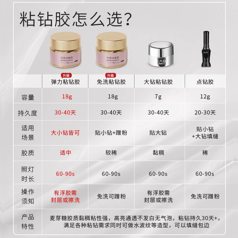 KaSi美甲粘钻胶硬式 封层啫喱超牢固持久镶钻饰品指甲加固光疗专用