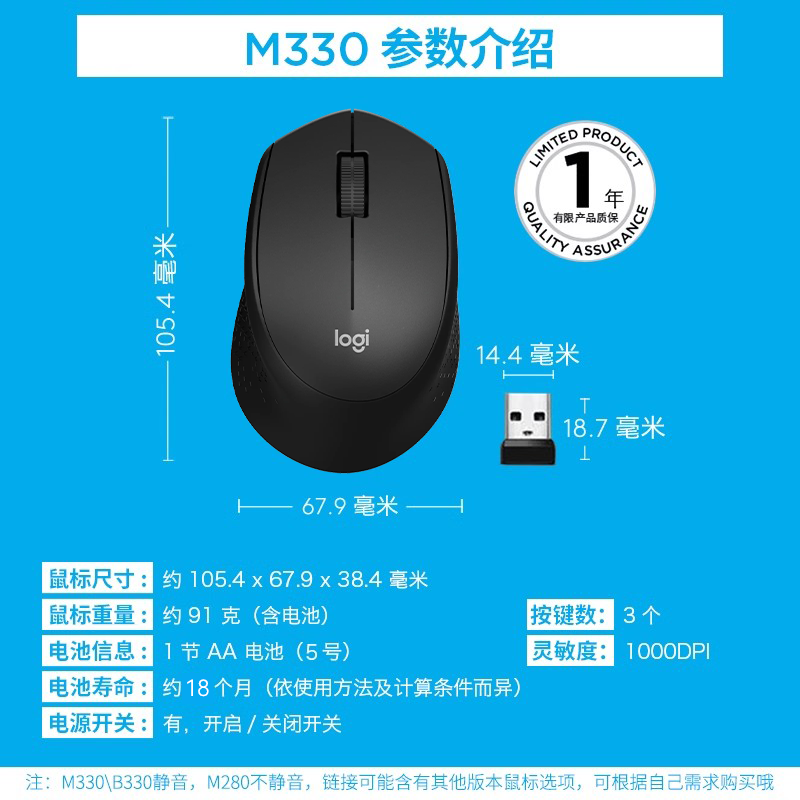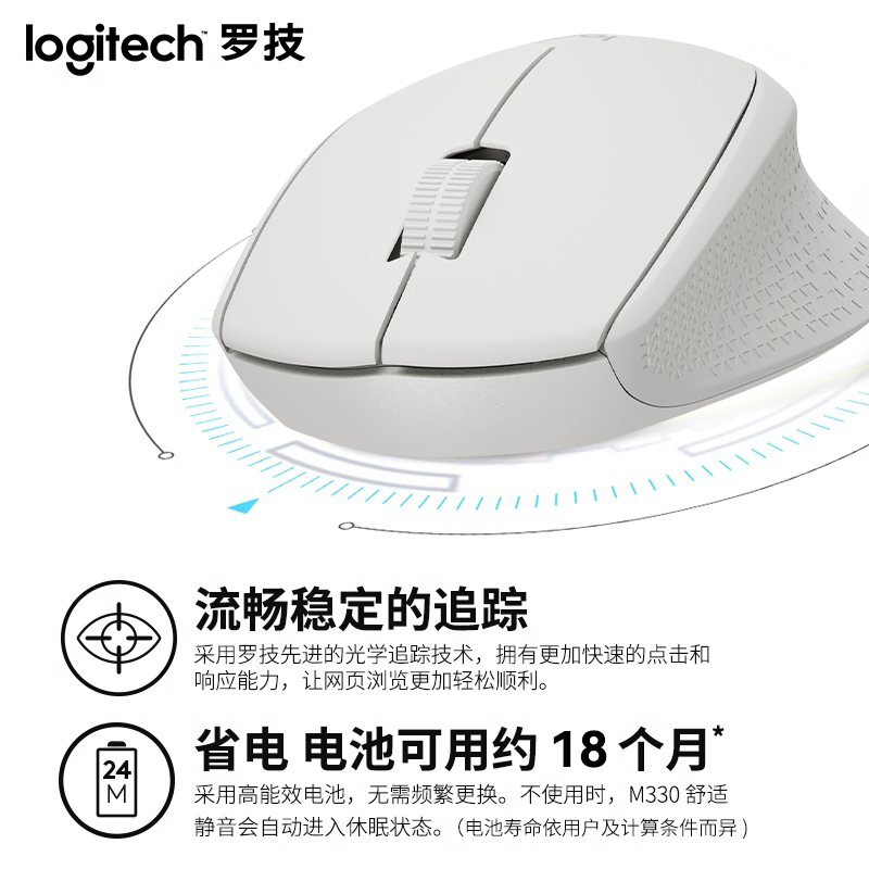 官方旗舰罗技M330无线鼠标笔记本台式 电脑办公家用轻音省电
