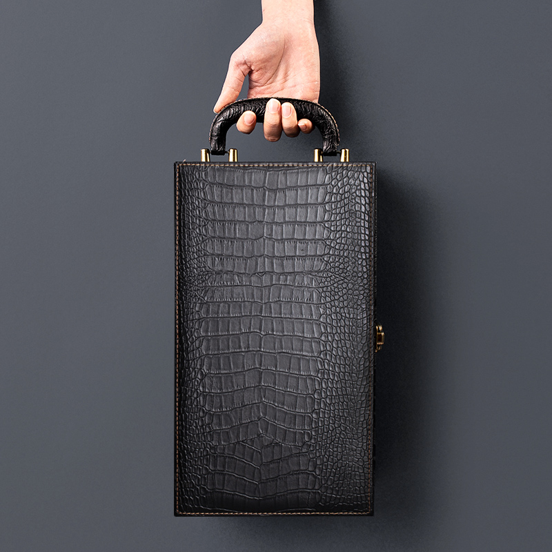 新款 盒双支4只皮盒子高档酒箱定制 鳄鱼纹红酒盒礼盒葡萄酒包装