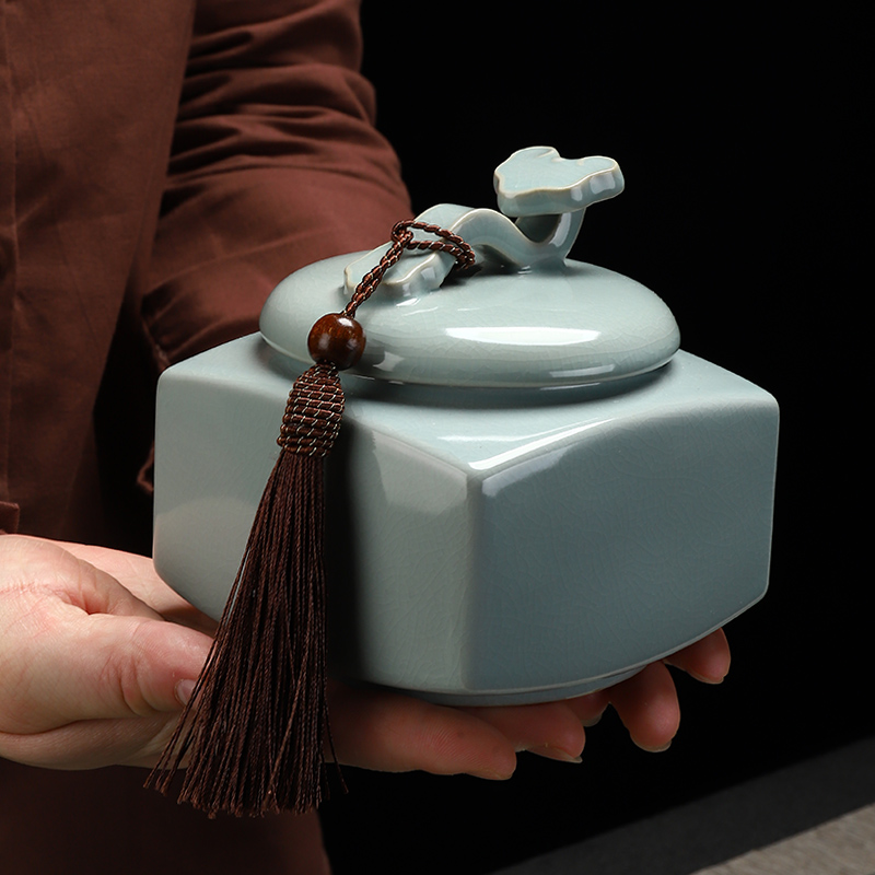 精品汝窑茶叶罐高档密封罐陶瓷罐子绿茶散茶储存罐中式 中秋送礼装