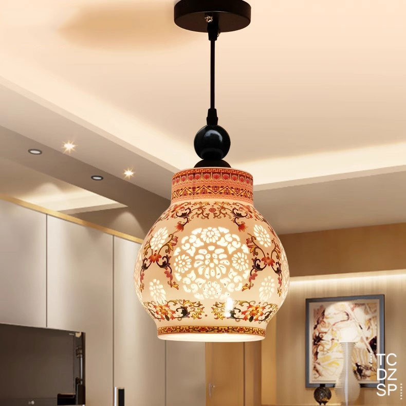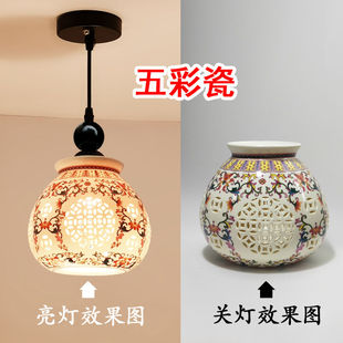 法式 小吊灯 复古餐厅中古南洋风手绘陶瓷吊灯床头玄关吧台过道日式