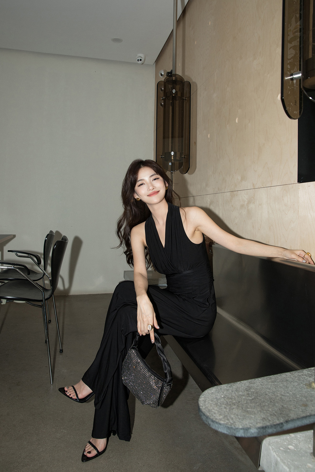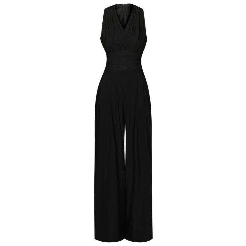御姐度假休闲黑色直筒长裤 夏季 V领女神范性感气质收腰垂感连体裤