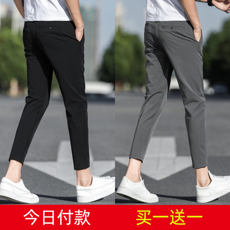 九分裤 男夏季 裤 卡其色裤 时尚 潮流休闲裤 冰丝潮男9分裤 男生 子韩版