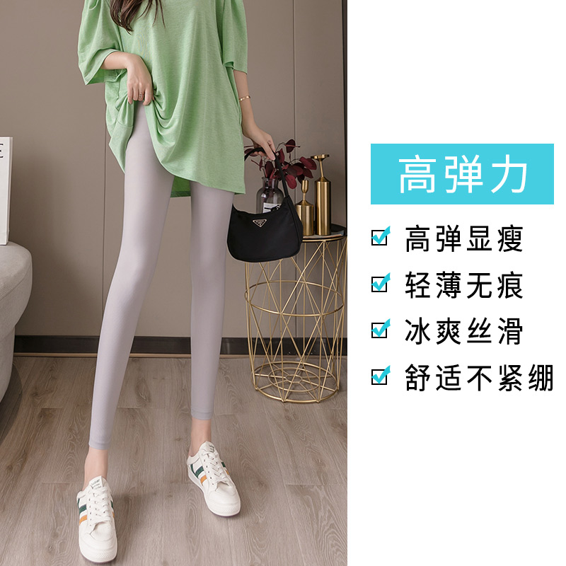 显瘦弹力小脚裤 冰丝打底裤 修身 九分高腰大码 女外穿防走光春夏薄款