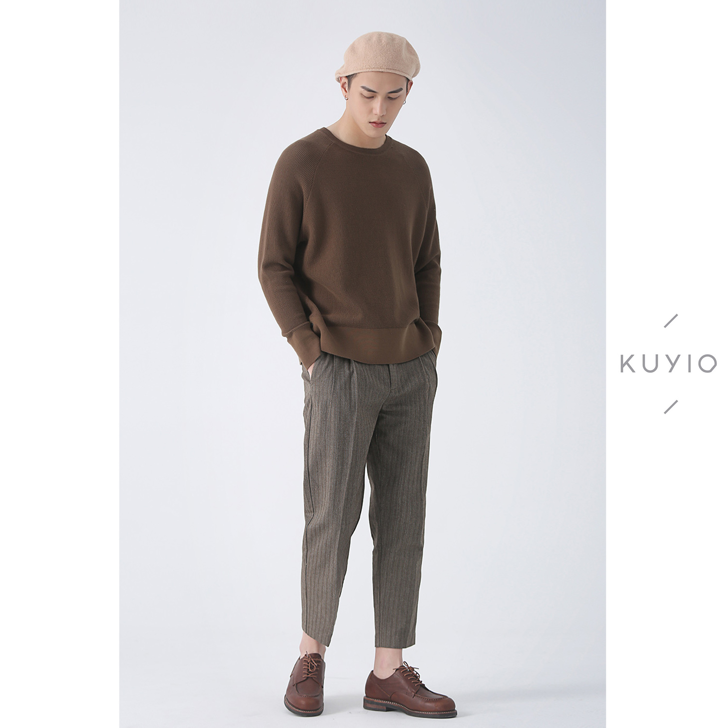 MrBu布先生海鸥领纯色长袖 t恤秋冬金属皮标亲肤贴身卫衣男PT15618