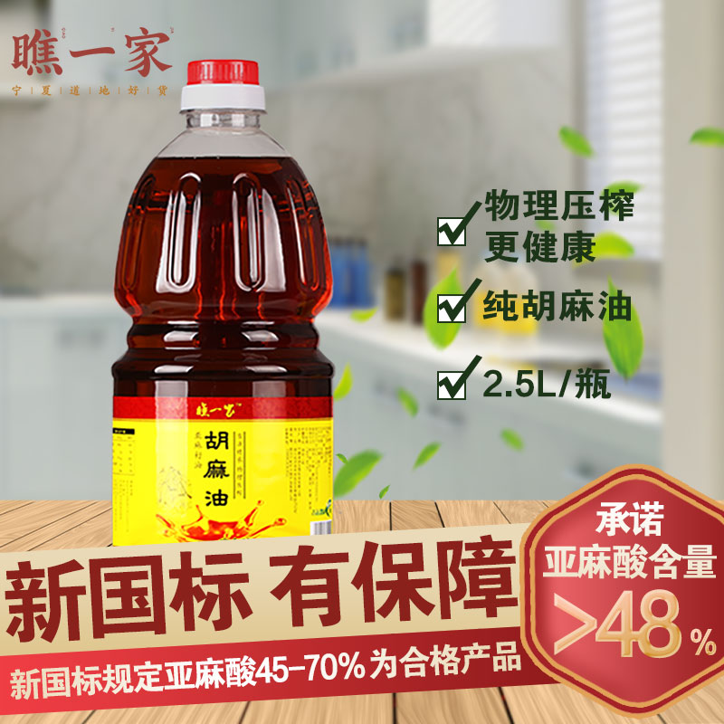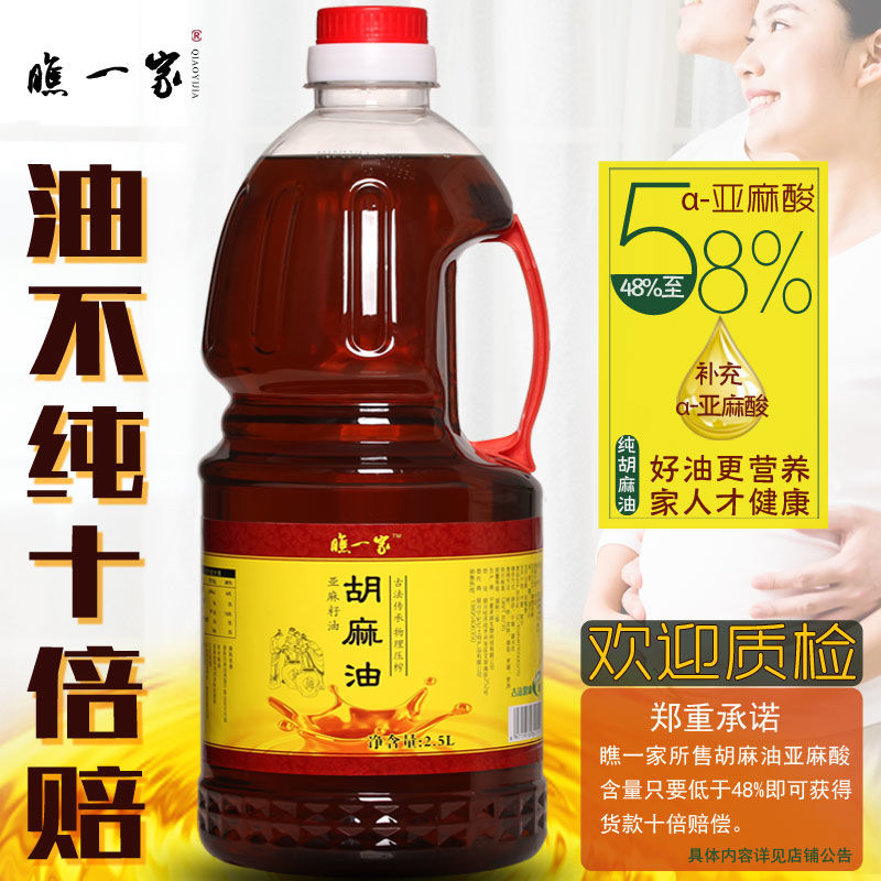 宁夏纯胡麻油正宗甘肃亚麻籽热淡香榨孕妇月子正品 瞧一家食用2.5L