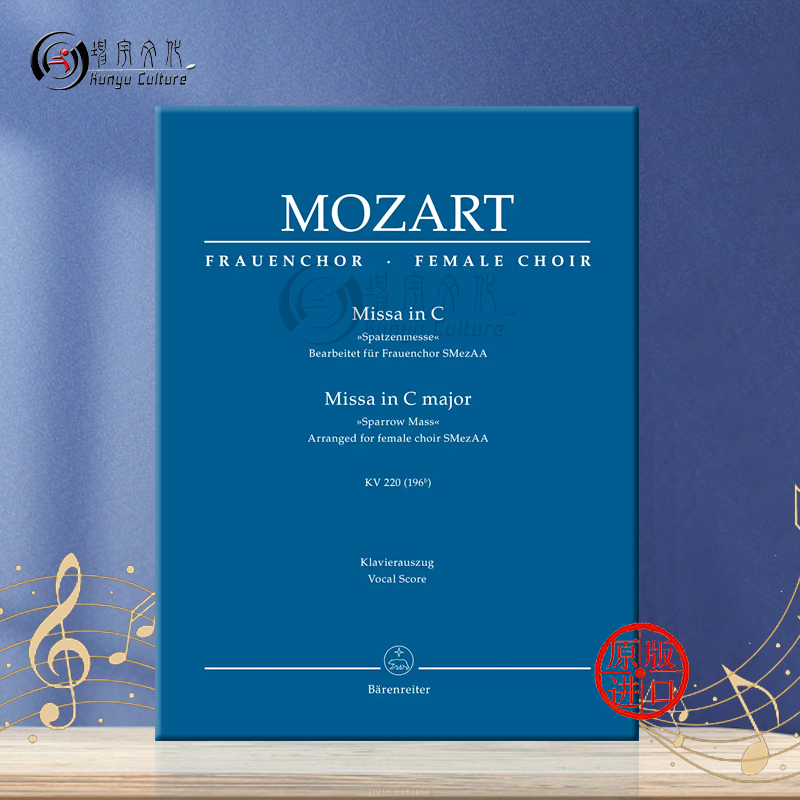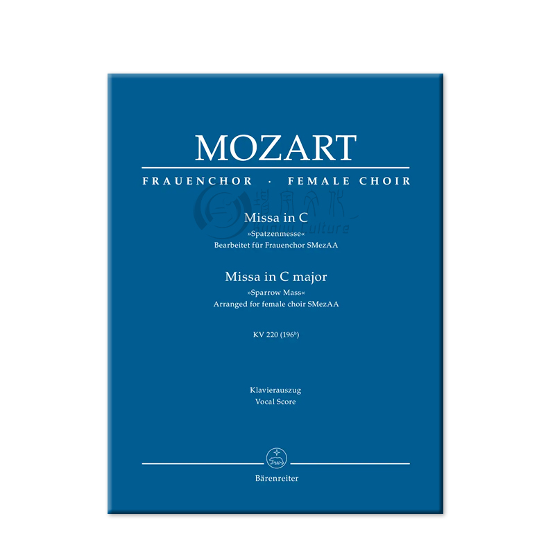 Sparrow 麻雀弥撒 改编 196b 莫扎特 声乐总谱 Mozart Mass 乐谱书 K220 骑熊士原版 钢琴缩谱 BA5693 女声合唱 C大调弥撒曲