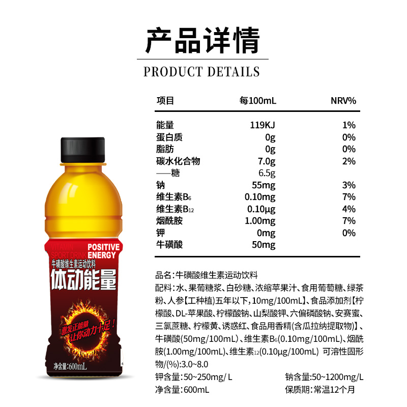 帕沃尔牛磺酸小分子蛋白肽功能饮料运动补充维生素能量0防腐饮料
