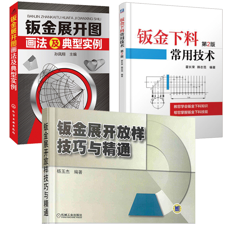 钣金展开下料手册 钣金展开图画法及典型实例 共3本 钣金展开放样技巧与精通 钣金制图基础钣金工艺技术书 钣金下料常用技术第2版