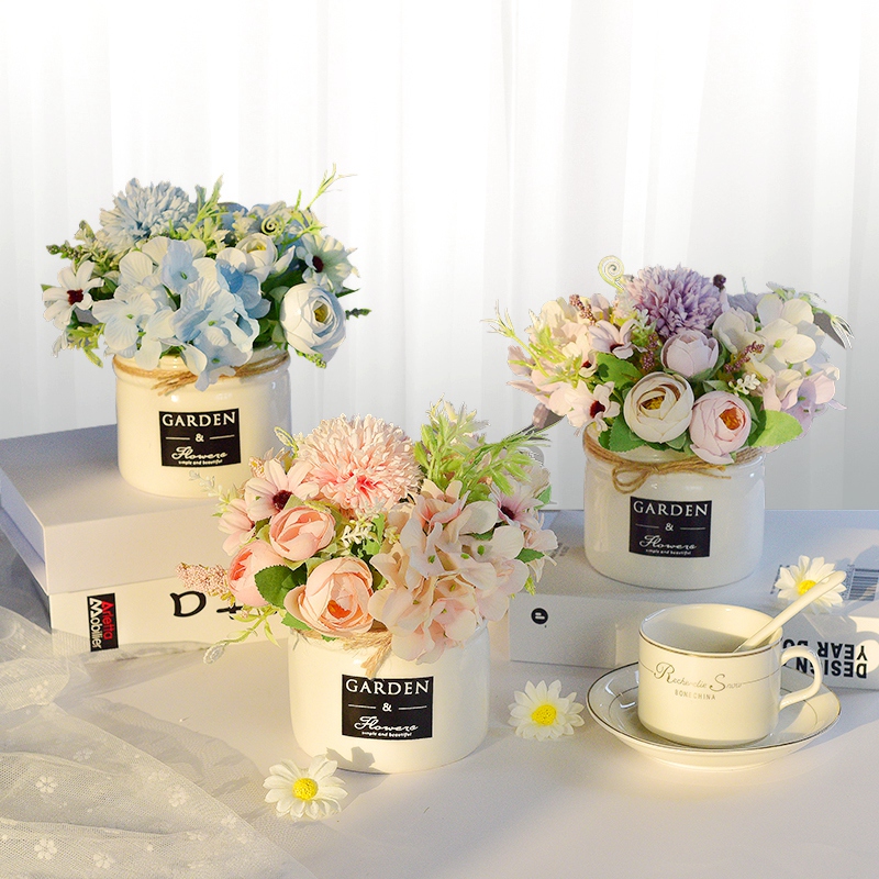 ins北欧假花仿真花室内家居干花摆件客厅玫瑰茶苞餐桌装 饰品摆设
