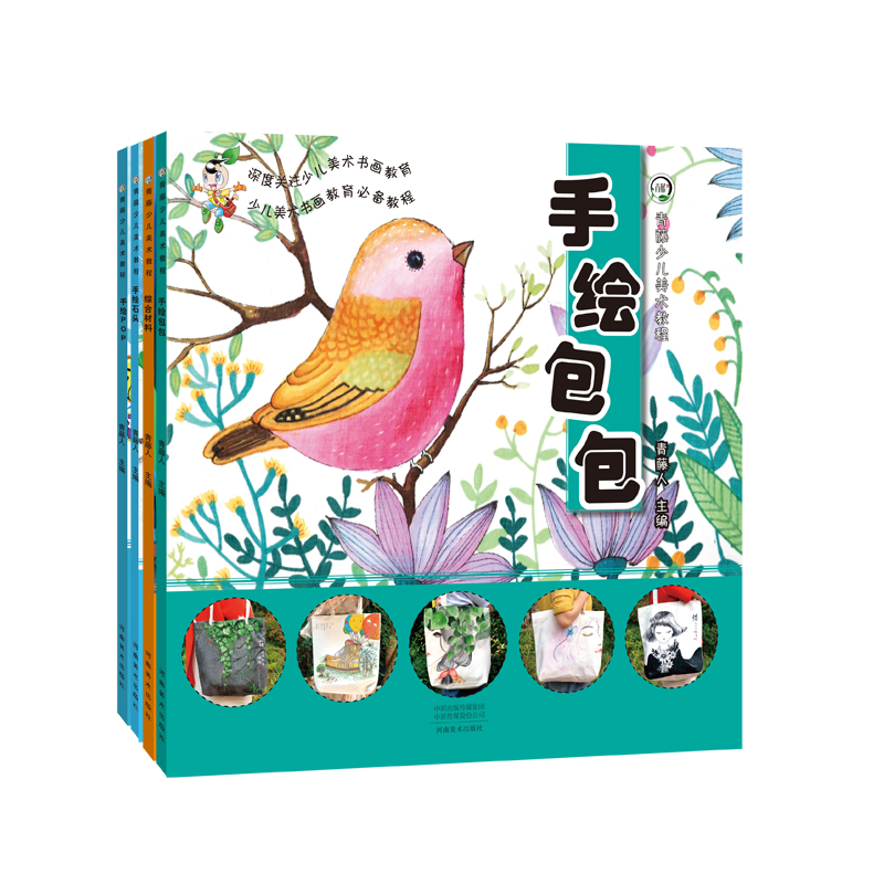 儿童少儿手绘美术教程 学生儿童画教材 4册手绘包包石头POP综合材料 初学者写生画技法教程彩铅油画棒 书籍 少儿绘画基础入门 正版