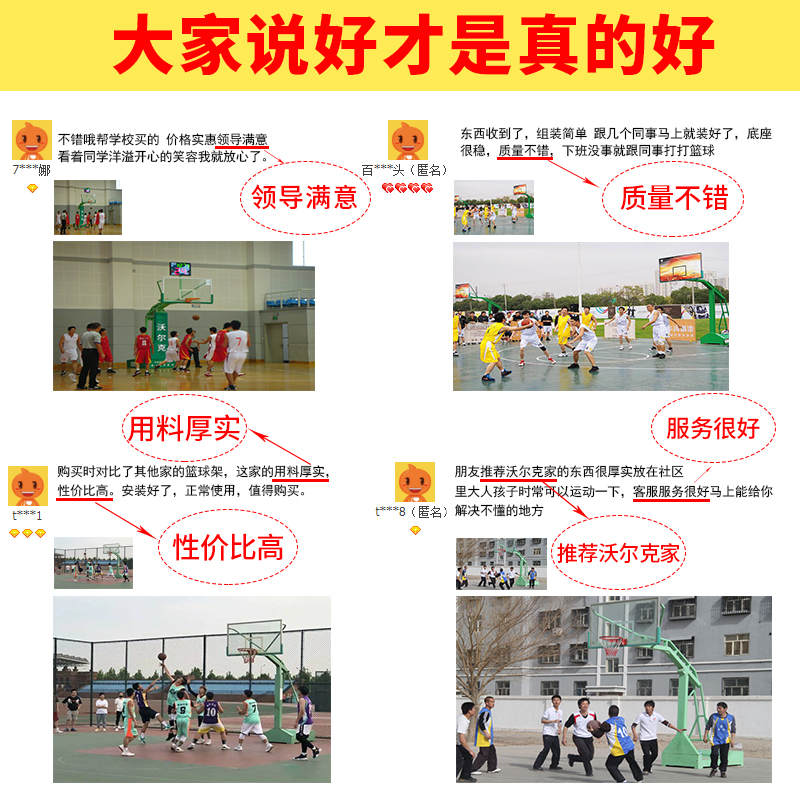 沃尔克篮球架成人户外移动式 平箱学校广场篮球框家用标准篮球架子