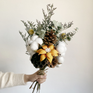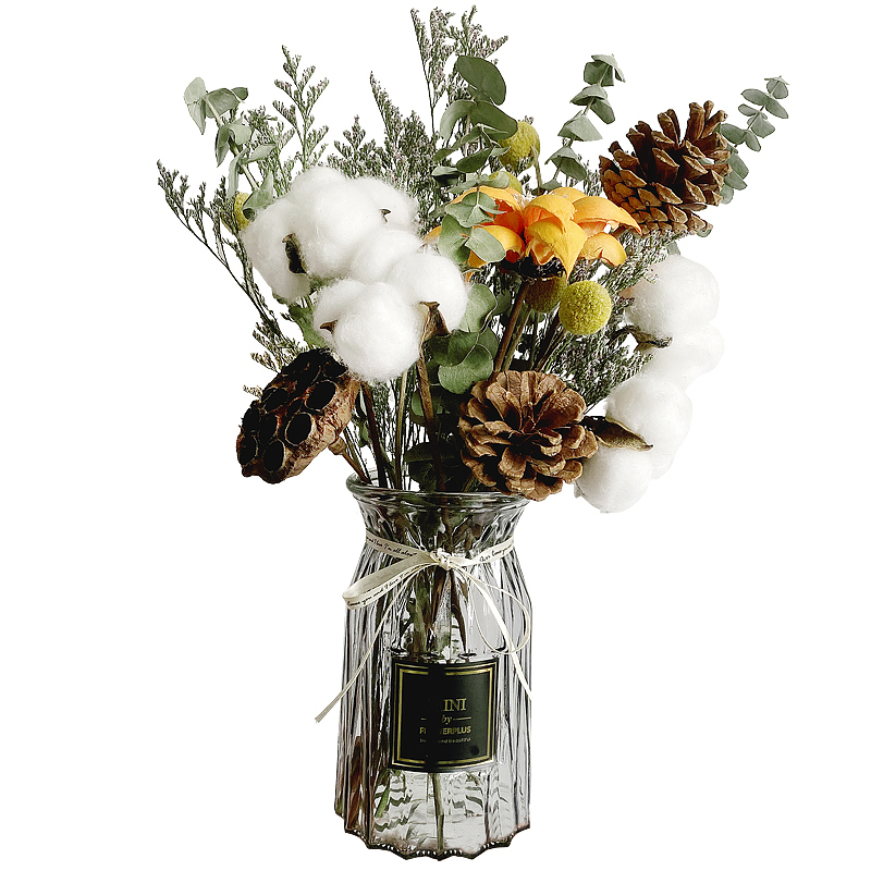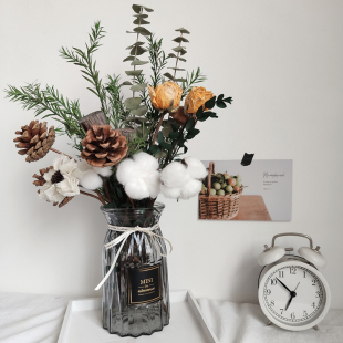 干花花束装 永生真花棉花尤加利叶家居客厅摆设 饰摆件ins北欧风格