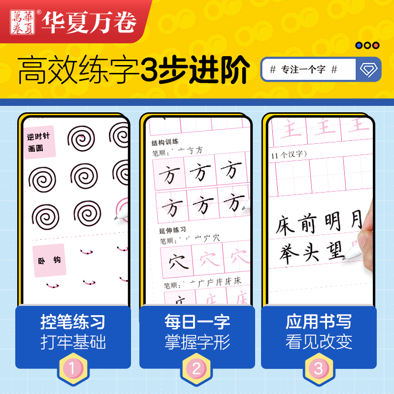 华夏万卷专注一个字楷书快写练字帖控笔训练成年硬笔成人学生视频教学正楷练字速成入门书法教程正楷字体女生钢笔练字本初学者