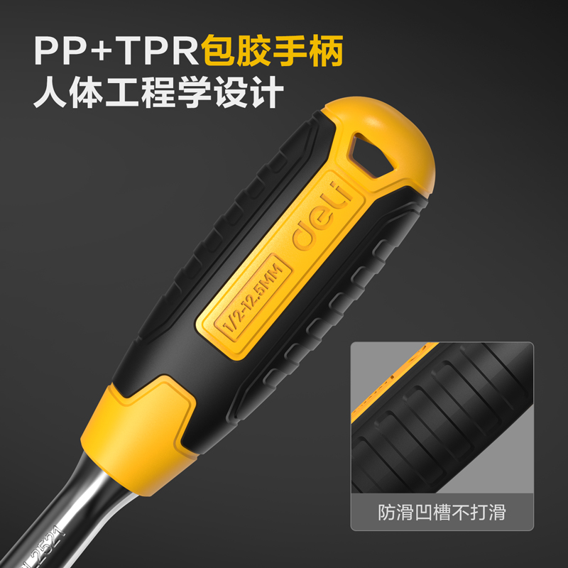 得力套筒直柄棘轮扳手大飞中小飞曲柄套筒工业级汽修工具快速扳手