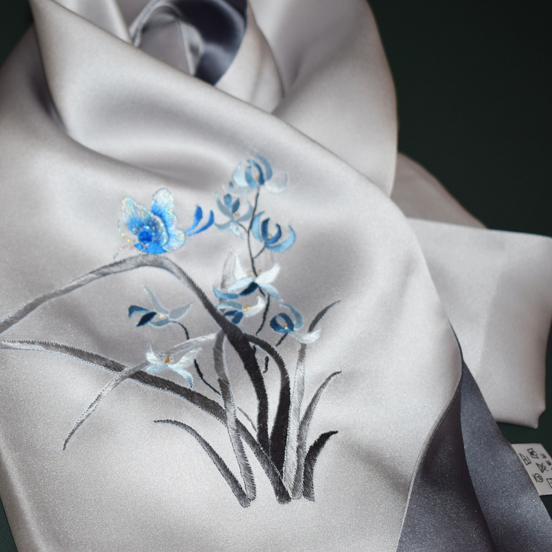 中国风绣花商务礼品苏绣围巾丝巾 手工刺绣围巾送礼盒 真丝桑蚕丝