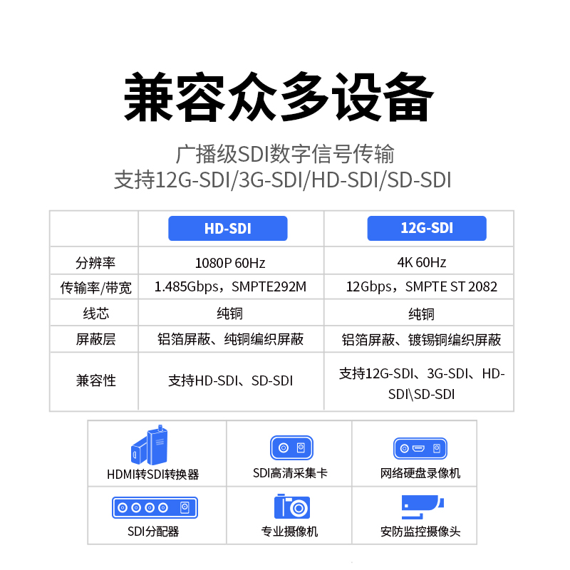 绿联sdi线bnc连接同轴电缆12g 5信号射频 hd视频转接头高清监控75