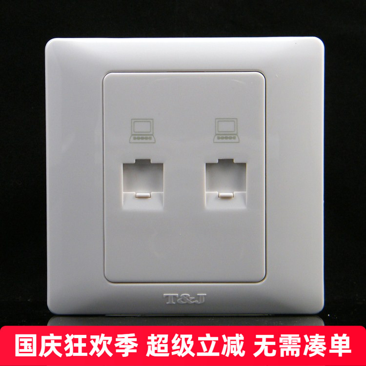 白色K802 二位双电脑插座 雅致系列 TJ天基开关插座面板