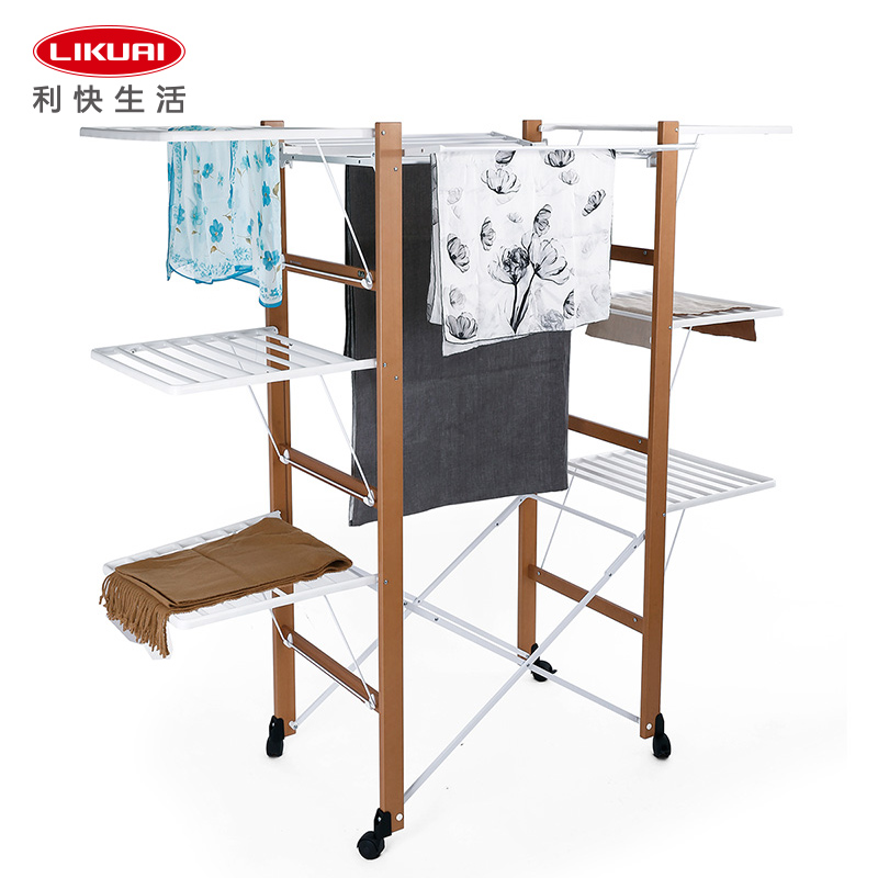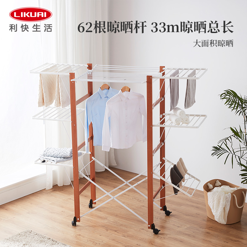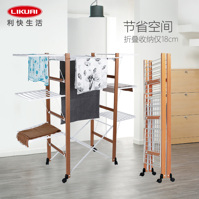 利快意大利进口三层加高可折叠落地晾衣架榉木实木移动室外晒衣架