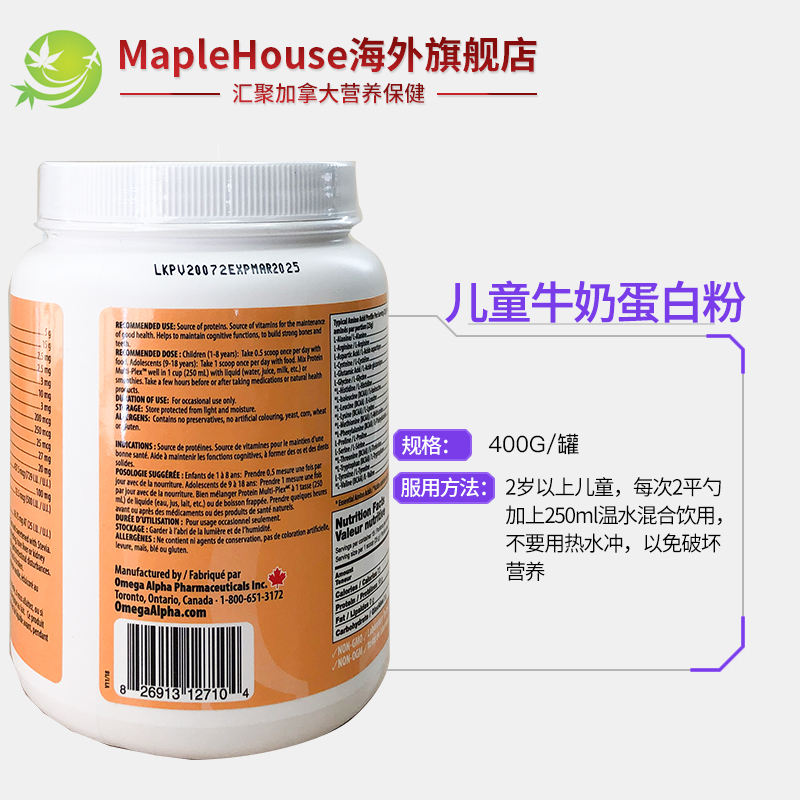 多维营养粉维生素粉 Alpha 香草味 加拿大直邮Omega 儿童蛋白粉