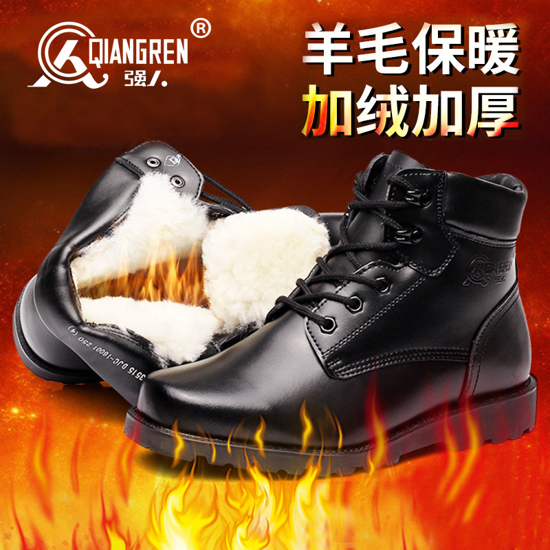 羊毛靴冬靴皮面防滑雪地靴加绒保暖鞋 冬季 中老年 男款 强人3515棉鞋